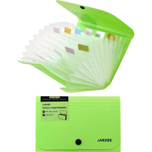 Папка на кнопке с 12 отделениями A6 (0,70 мм) deVente 3078009 зеленая